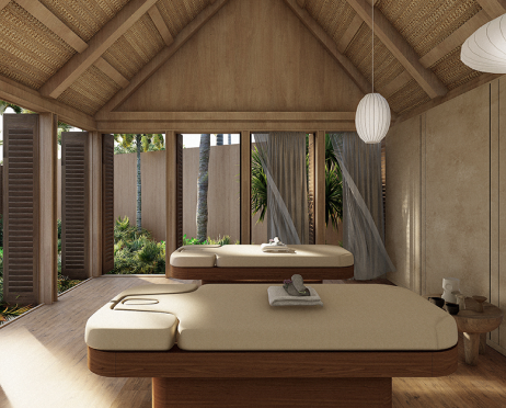 • Private cabins set among gardens, offering exclusivity and direct contact with nature.